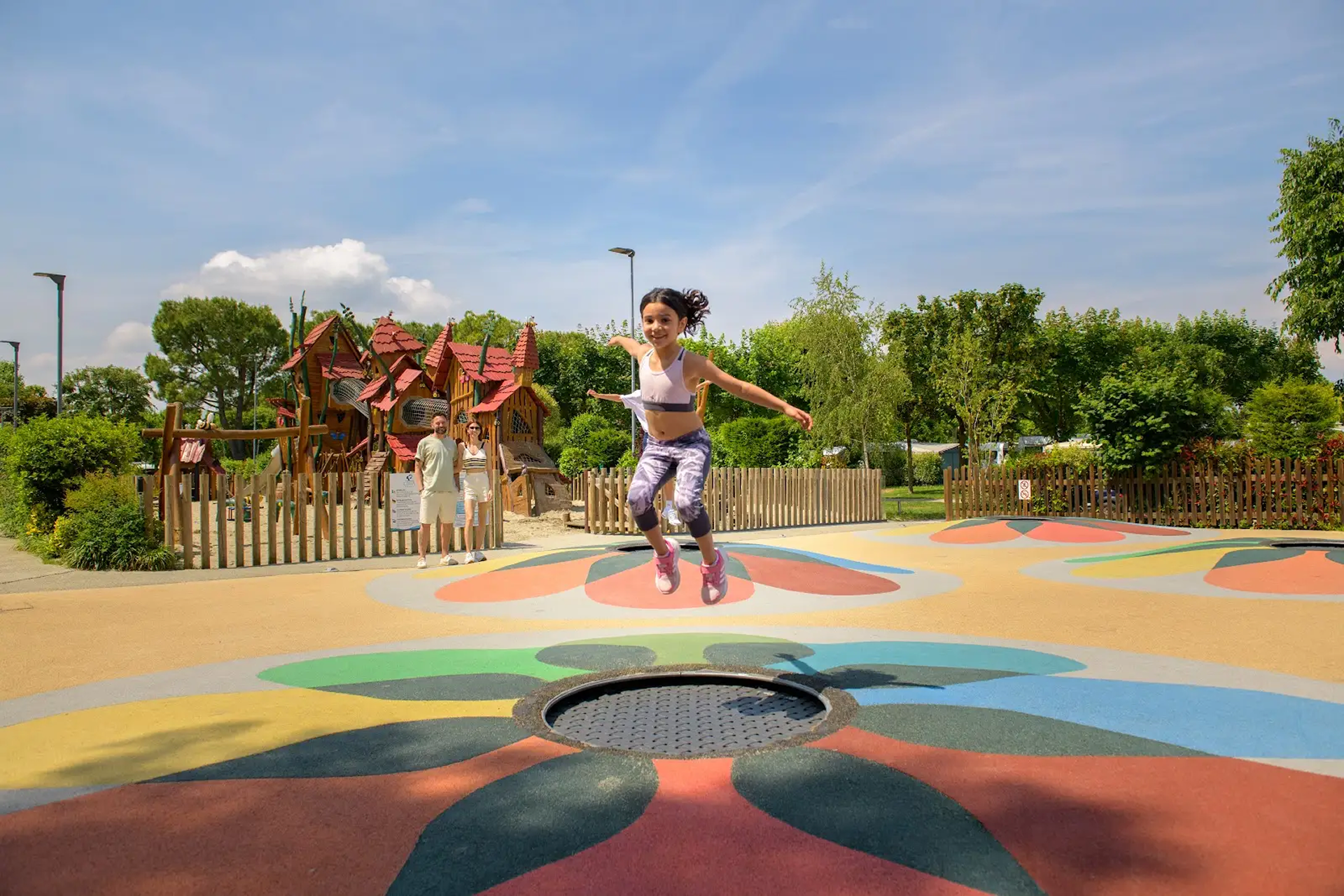 - Themed playgrounds, with trampolines and sand