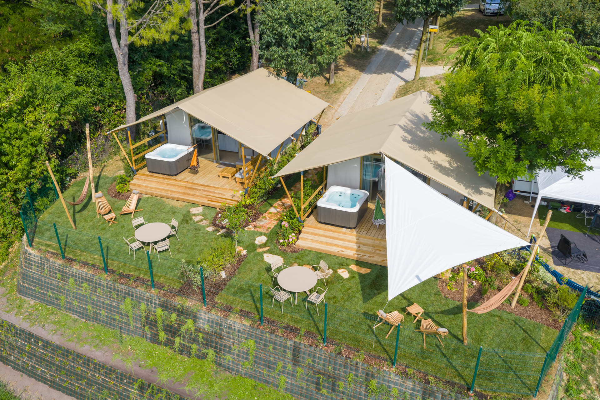 e un’esperienza completamente accessoriata, ma che profuma di avventura: ambienti accoglienti e spazi esterni che valorizzano i momenti di relax, con un design particolare, che richiama la vita in tenda all’aria aperta.